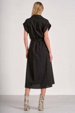 Elevate your wardrobe with this Black Collared Midi Dress, expertly tailored for a polished and timeless look. Featuring a refined collar and a flattering midi length, it seamlessly transitions from professional settings to elegant evening occasions.