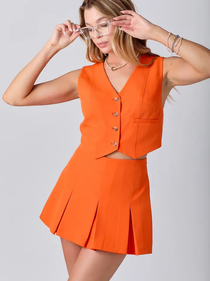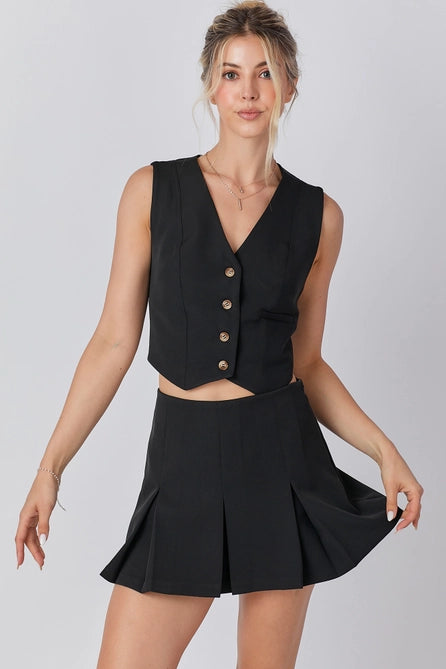 Front Button Vest & Skort Set