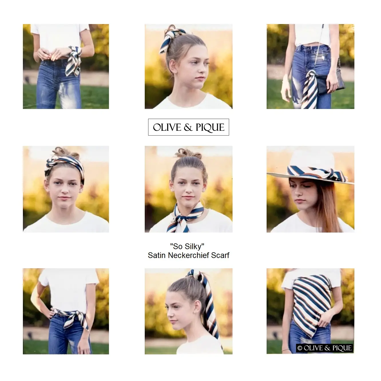 Elevate your look with our chic, neckerchief scarves, the ideal accessory to add a pop of style to any outfit. Whether tied around your neck, styled as a headband, wrapped around your fedora hat, looped around a ponytail, or attached to your handbag, the versatility and value of these scarves are unmatched. Explore our wide range of patterns and colors to find your perfect match!