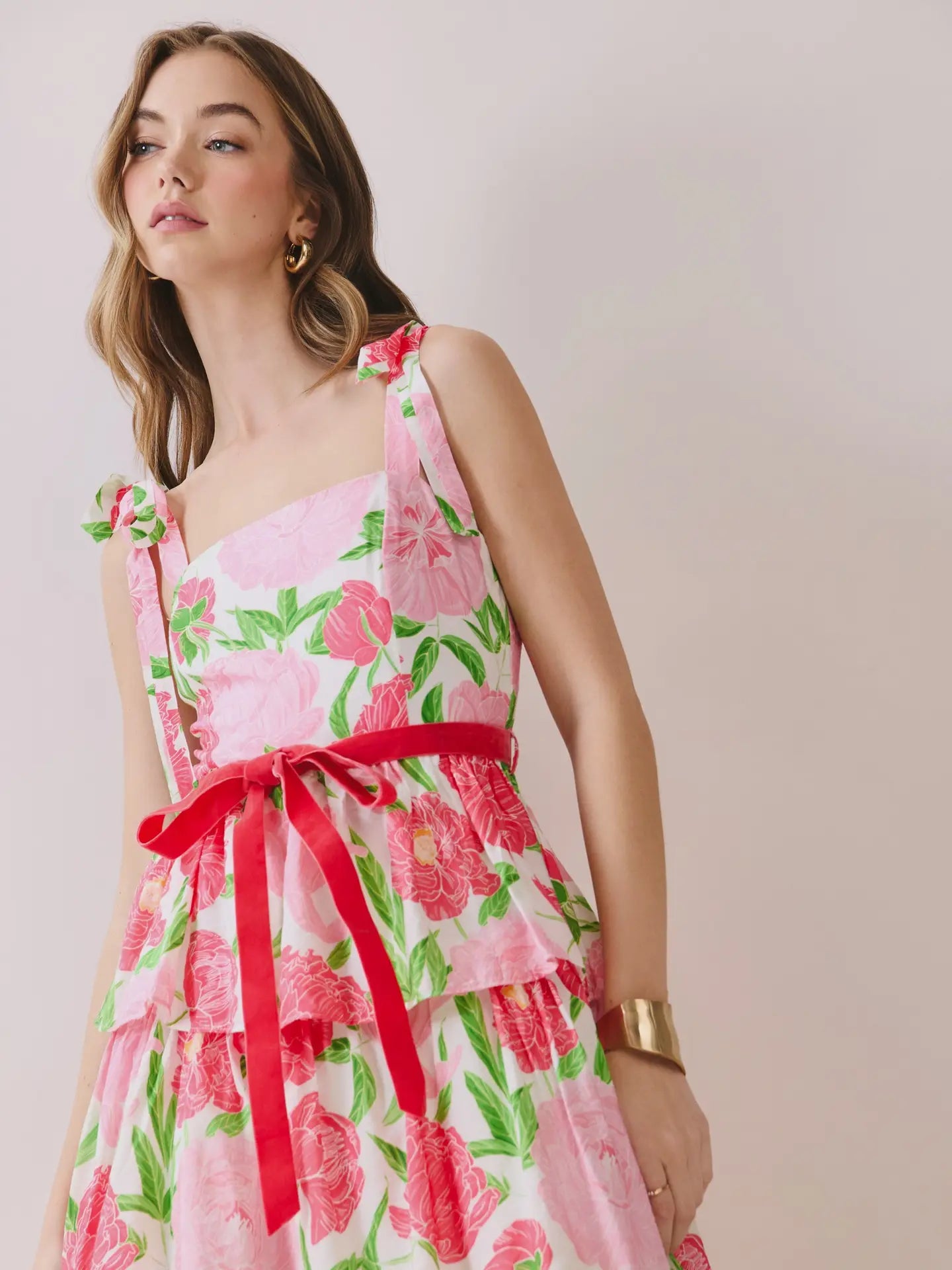 Bloom in effortless style with this floral-print maxi dress that's equal parts romantic and wearable. The square neckline and adjustable self-tie straps let you customize your fit, while the fitted bodice and contrast waist belt create a flattering silhouette. A tiered skirt flows freely below, and the smocked back panel keeps you comfortable all day long—whether you're heading to brunch or a garden party. Perfect for anyone who loves a dress that moves as beautifully as it looks.
