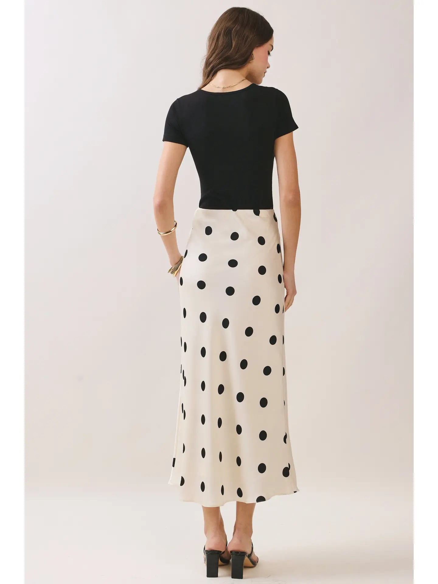 Twirl with confidence in this charming polka dot maxi skirt. The elastic waistband ensures a comfortable, no-fuss fit, while the flowing A-line cut flatters every figure. Crafted from lightweight fabric with a graceful drape, it moves with you through your day—perfect for casual outings, weekend adventures, or effortless layering. A versatile wardrobe essential that brings joy to any outfit.