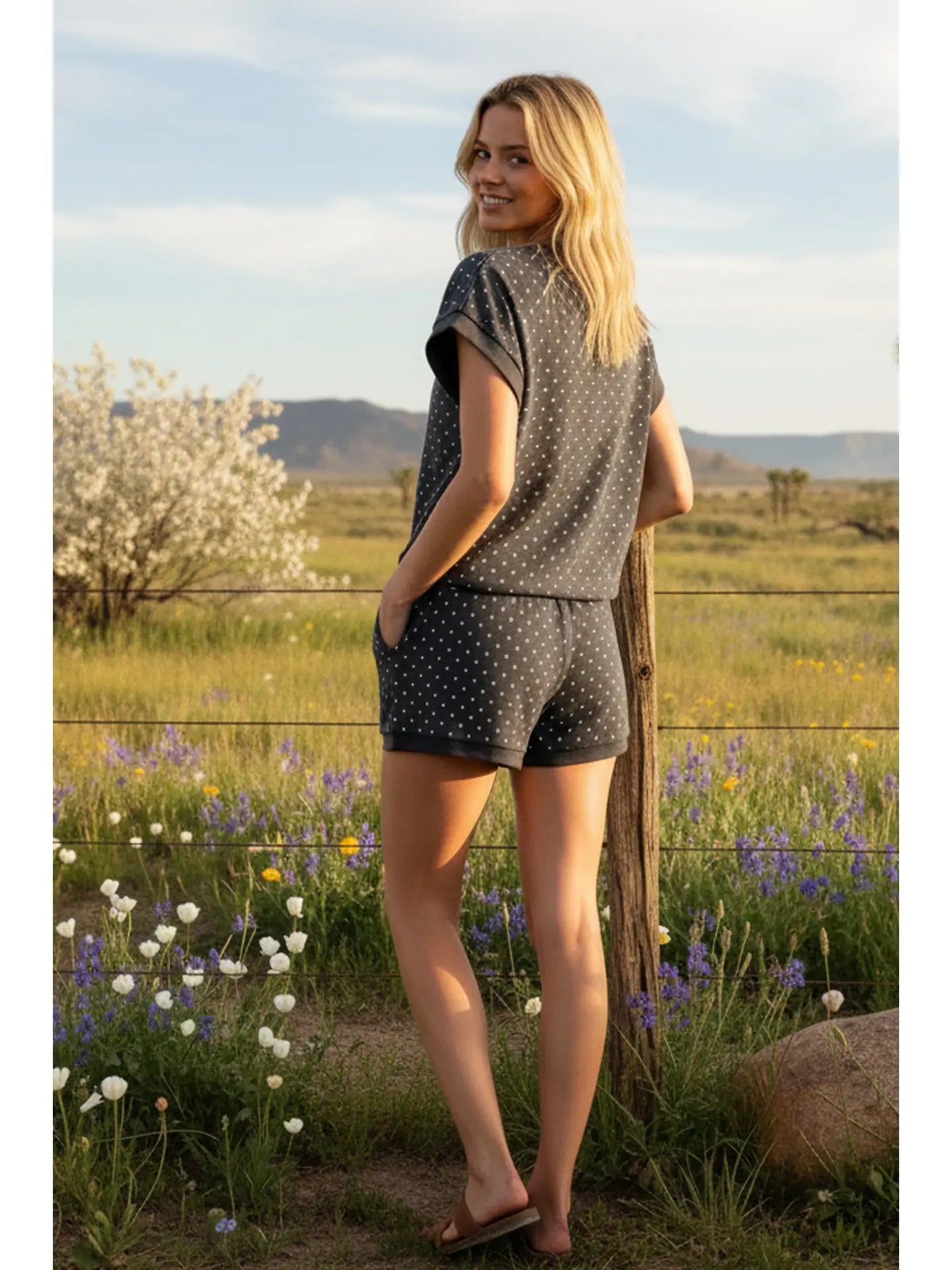 Adorable polka dot set featuring a short sleeve top and matching shorts. Perfect for casual days, playdates, or relaxed weekends. The classic polka dot pattern adds a playful touch to any wardrobe, while the lightweight fabric keeps you comfortable all day long. Mix and match with other pieces or wear together for a coordinated look. Ideal for kids who love fun, timeless style.
