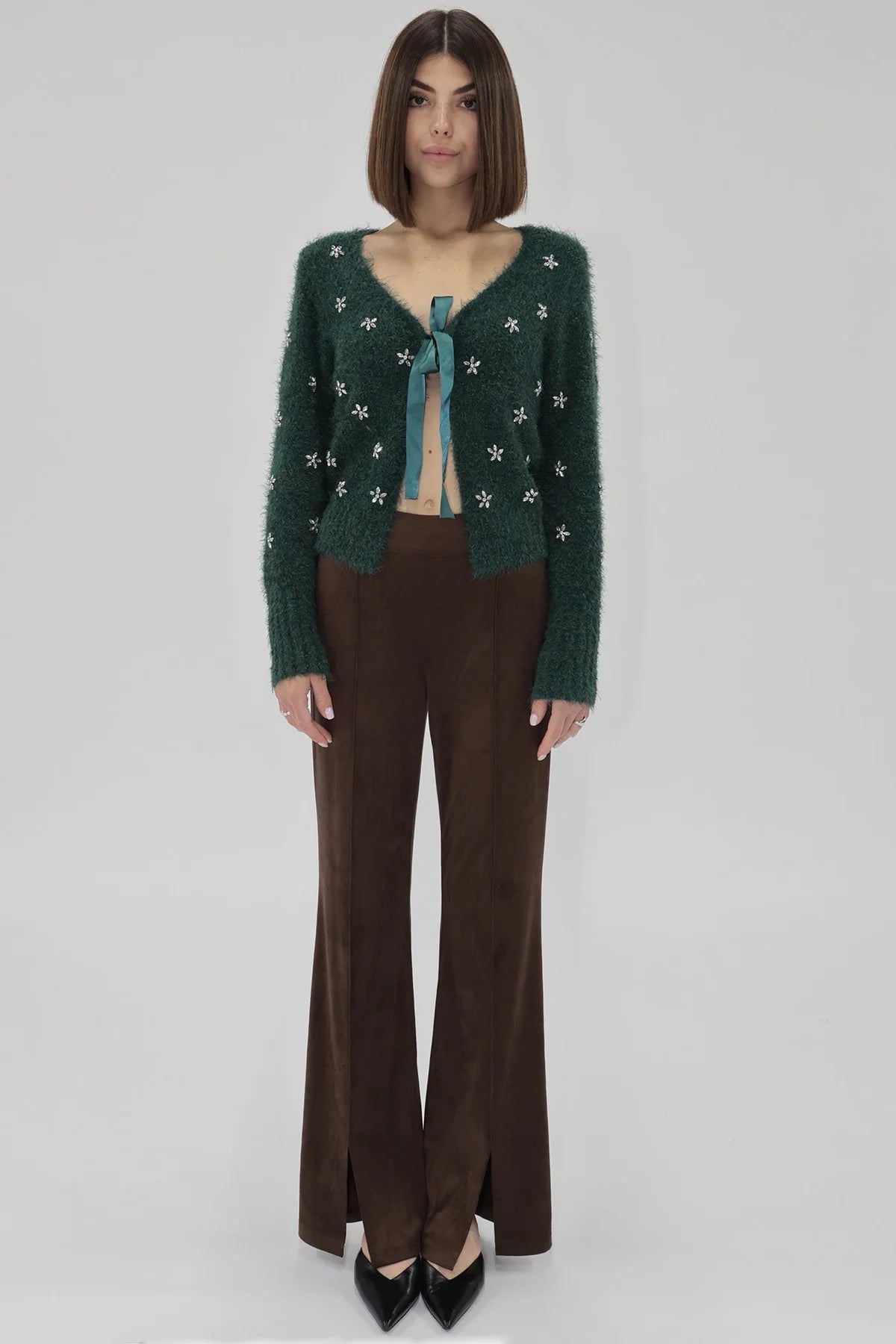 Serafina front tie fuzzy cardigan featuring a soft and luxurious texture. The classic fitting sweater with long sleeve effortlessly enhances your outfit, providing both warmth and a touch of chic sophistication to your wardrobe.