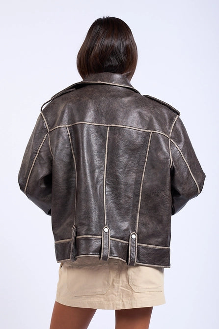Washed Oversized Leather Jacket