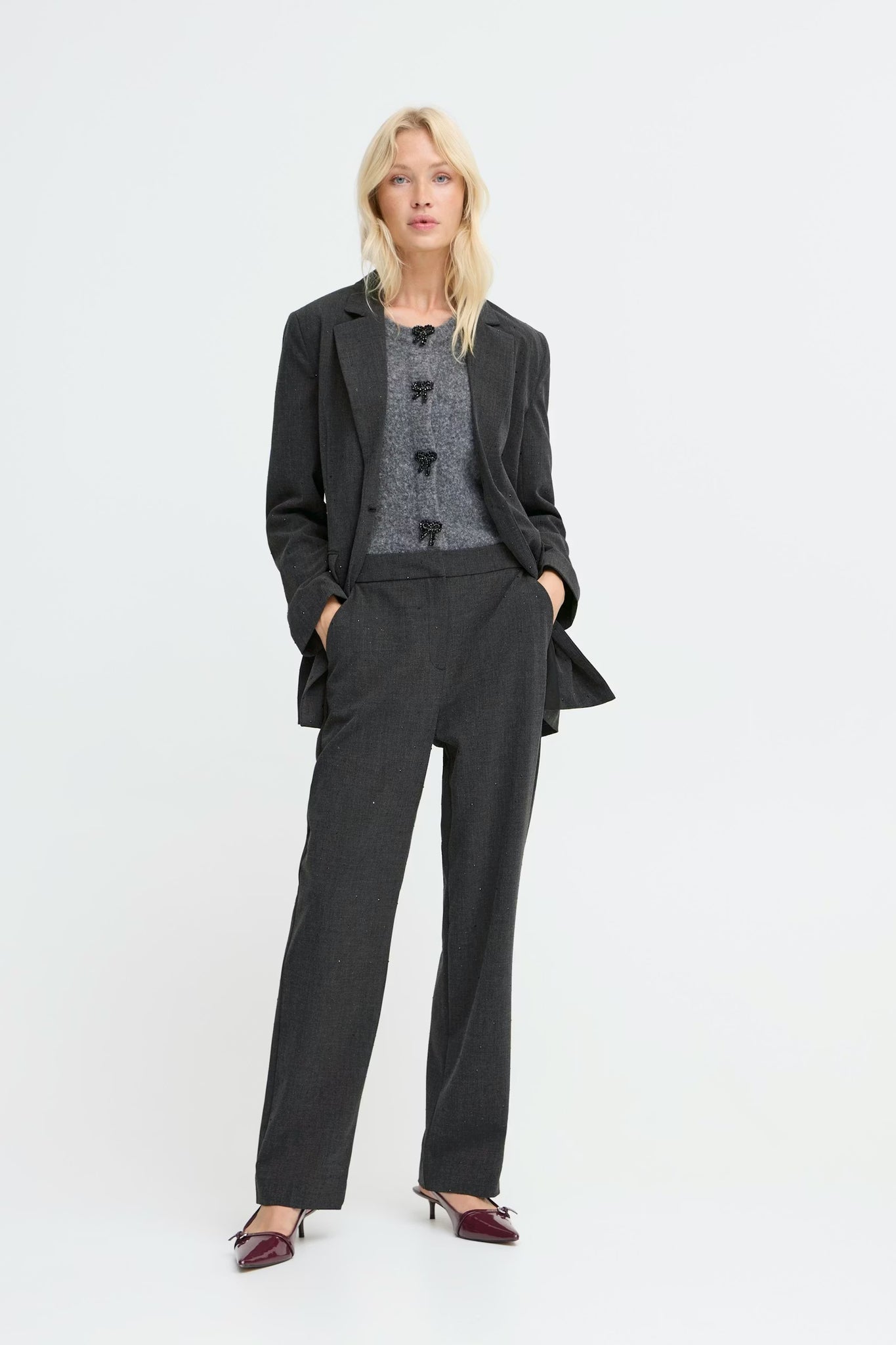 Tailored trousers feature a classic straight leg fit for versatile office or casual style. The comfortable waistband and full length add everyday comfort while clean styling details make these pants a wardrobe essential. Pairs perfectly with our Bydanta RH Blazer