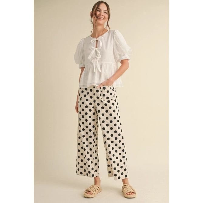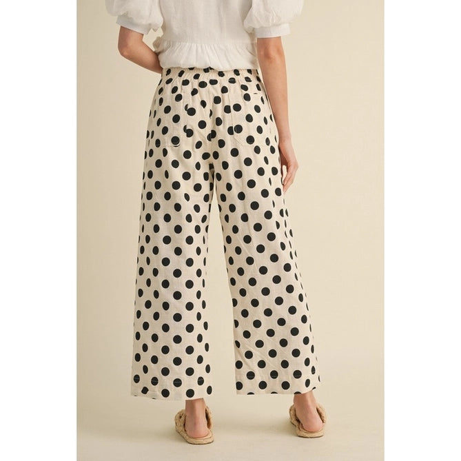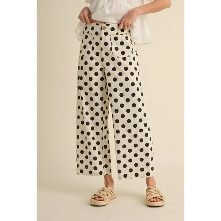 Step into effortless style with these playful polka dot wide leg pants. Featuring a hidden zipper closure and a comfy back stretch band, they offer the perfect fit with ease. Keep essentials close in the convenient side and back pockets, while the lightweight, non-sheer fabric keeps you cool and confident all day long. Perfect for adding a fun twist to your wardrobe!