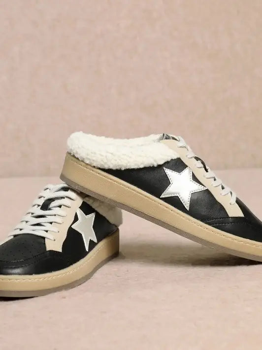 Step into the spotlight with Sabot Sneakers, where bold stars and shiny heels come together to make every step a statement. These playful kicks add a dash of fun and flair to your look, perfect for turning heads and owning the streets wherever you go.