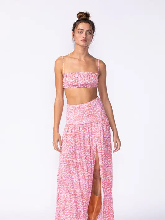 This playful floral pastel maxi skirt brings a breezy, feminine touch to your wardrobe. Featuring a charming side slit, it adds a flirty twist while allowing easy movement. Perfect for sunny days or casual outings, its soft colors and flowy fabric make it a delightful choice for effortless style.