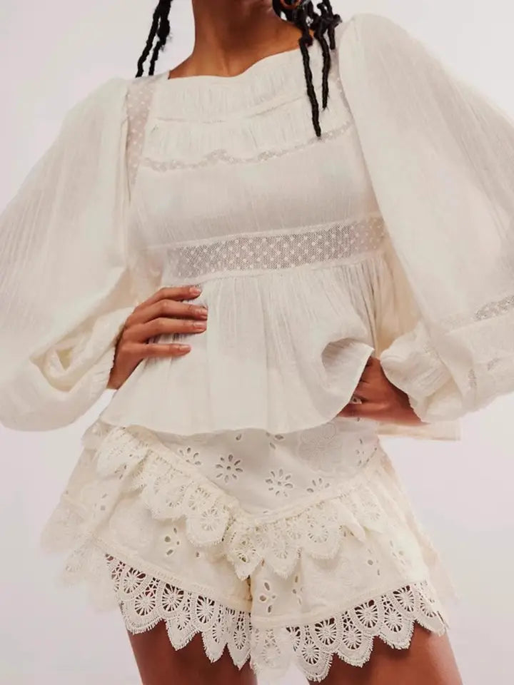 Your new charming skort features intricate lace trim and elegant eyelet design. Perfect for daytime adventures or stylish evening outings.