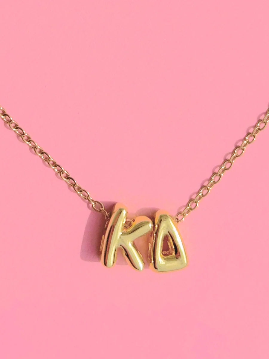 This fun popular necklace is water resistant, gold bubble shaped sorority letters. 16-18" adjustable gold chain making it easy to wear