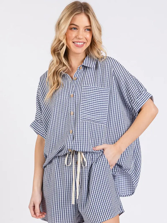The cutest gift for a girl's night! This set comes complete with drawstring shorts and a matching scrunchie and eye mask!