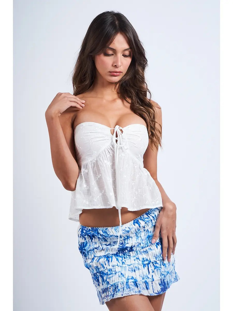 This adorable white crop top features delicate floral embroidery that adds a charming touch to your outfit. Perfect for sunny days and playful vibes, it pairs effortlessly with your favorite jeans or skirts for a fresh, fun look. Embrace a lighthearted style with this sweet and stylish piece.