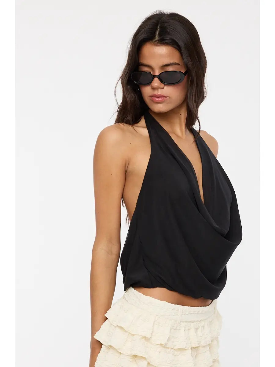 Halter Tie V-Neck Mesh Top