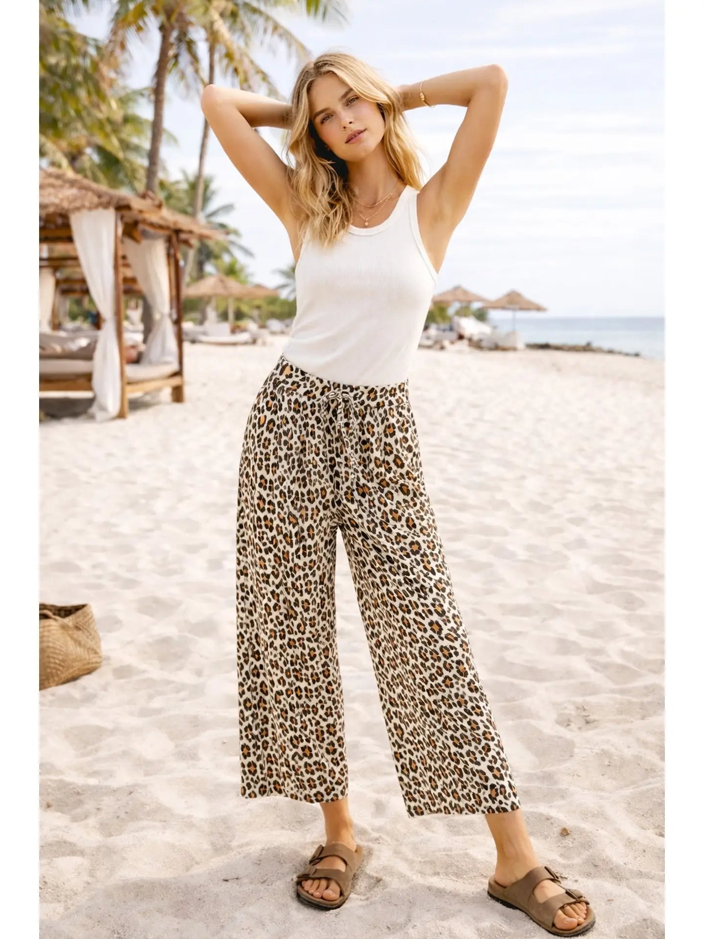 Embrace effortless style with these leopard print wide leg pants. Featuring a playful animal print design and comfortable drawstring waist, they offer a relaxed fit that flatters all body types. The wide leg silhouette creates a modern, flowing look perfect for casual outings or laid-back days. Pair with sneakers for a trendy vibe or dress up with heels for a night out. A versatile wardrobe essential that brings personality to any outfit.