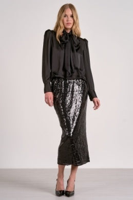 This playful long-sleeve top features a flattering V-neck and a charming scarf tie at the neck, adding a touch of whimsy to your outfit. Its cozy sleeves and stylish detail make it perfect for mixing comfort with a dash of fun flair.