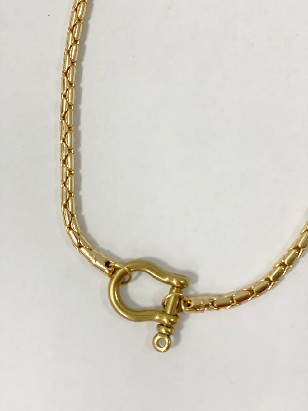 Delicate horseshoe clasp necklace combining warm gold and cool silver tones for a timeless, layered look. The mixed-metal design adds versatility to any jewelry collection, transitioning effortlessly from casual to dressed-up occasions. Perfect for stacking or wearing solo, this charming piece brings a touch of luck and understated elegance to your everyday style.